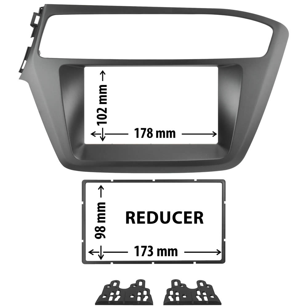 Όλες οι βάσεις στήριξης για οθόνες εμπορίου κατασκευάζονται με στάνταρ διαστάσεις 2 DIN (172 X 97 mm) που τηρούν οι επώνυμες εταιρίες π.χ. Pioneer, Sony, Kenwood, JVC, Alpine κ.λπ.