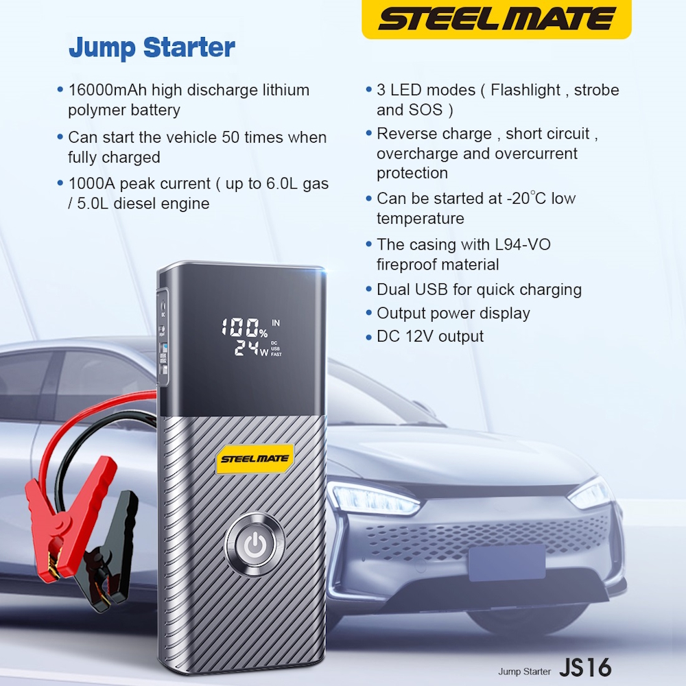 Το κιτ εκκίνησης συμπαγών διαστάσεων που θα σας βοηθήσει να ξεκινήσετε ένα όχημα, χρησιμεύει επίσης ως power bank για φόρτιση USB ή φορητό φως LED.