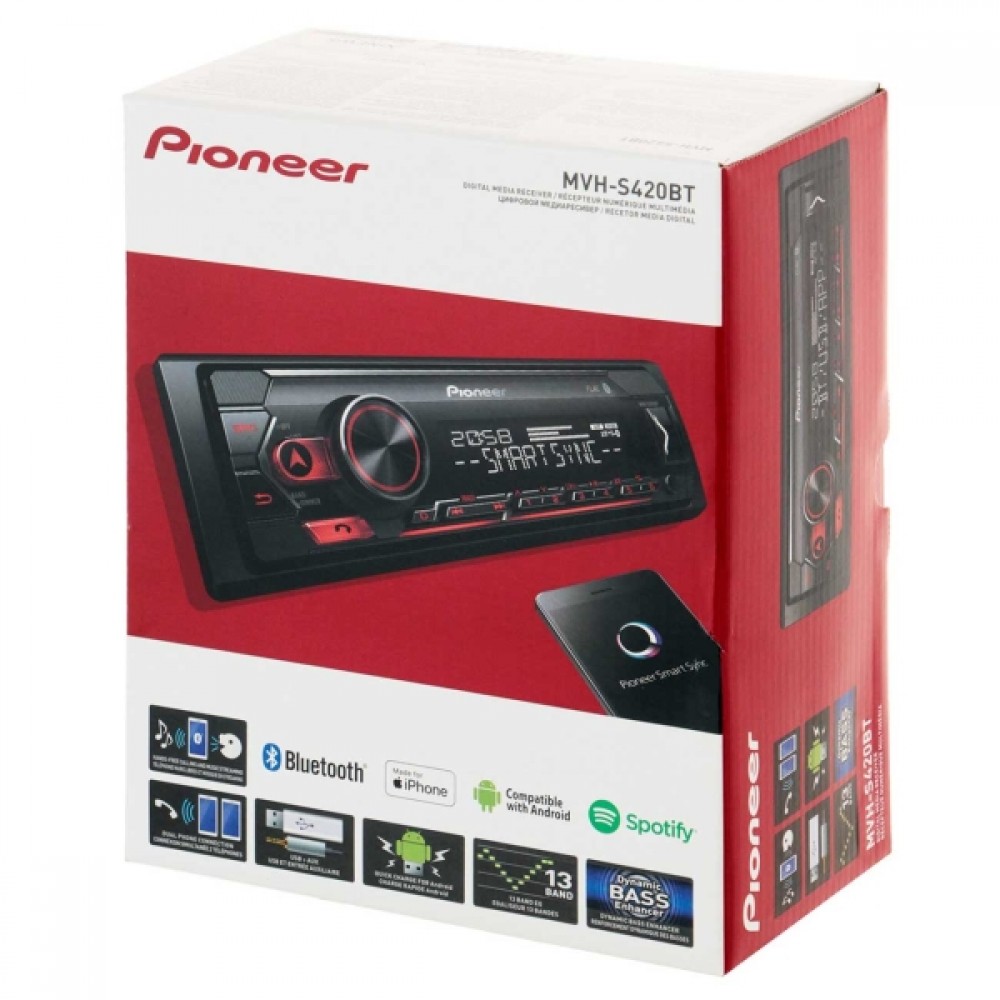 Pioneer MVH-S420BT – Ράδιο με Bluetooth®, κόκκινο φωτισμό, USB, AUX, Spotify