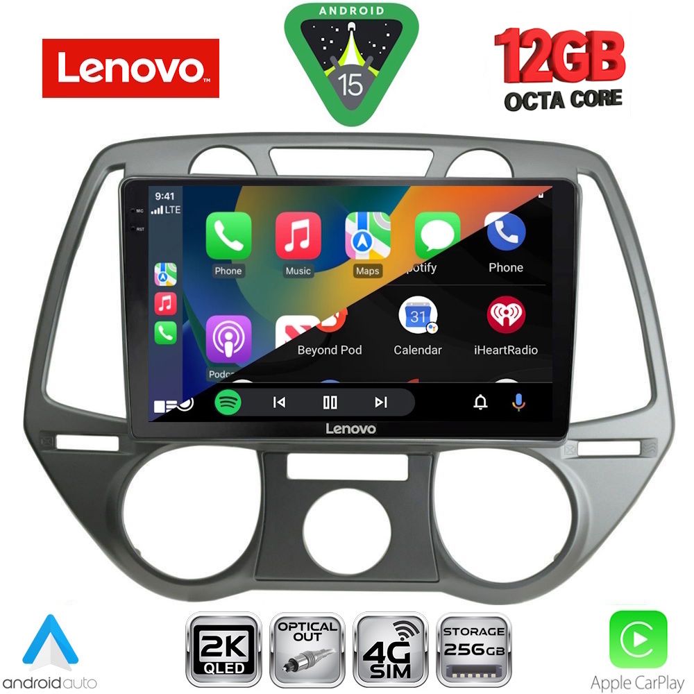 Οθόνη Hyundai i20 2008 – 2013 με CarPlay, Android Auto, GPS, Bluetooth – LENOVO SSZ 12228_CPA A/C (9inc)