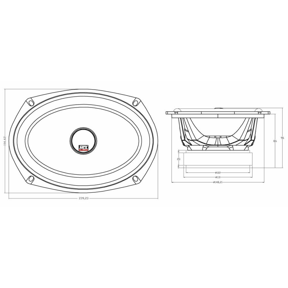 The MTX TX669C are high-end 16x23cm (6×9″) coaxial speakers. They handle 120W RMS and 480W per pulse (that’s huge …). They have a 4 ohm impedance to accommodate to all amplifiers. They are equipped with the very best: MTX aluminum frame for optimal rigidity, pressed paper membrane for more musicality, detail and warmth, giant magnet for incredible power handling, extra-large 35mm diameter TSV TIL voice coil for all-round detail and power handling thanks to improved cooling, phenomenal neodymium magnet tweeter and 28mm diameter silk dome for smooth, dynamic sound , rubber suspension to handle the large deflections.